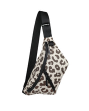 תיק פאוץ' מנומר חום בז' על הדוגמנית בפרונט, עם רצועה שחורה - לוק אורבני מושלם ליום יום, פאוץ׳ טבעוני וקליל