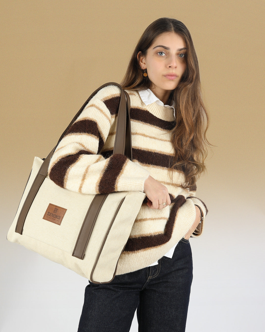 עשוי בד דמוי עור איטלקי בשילוב בד קנבס איכותי -