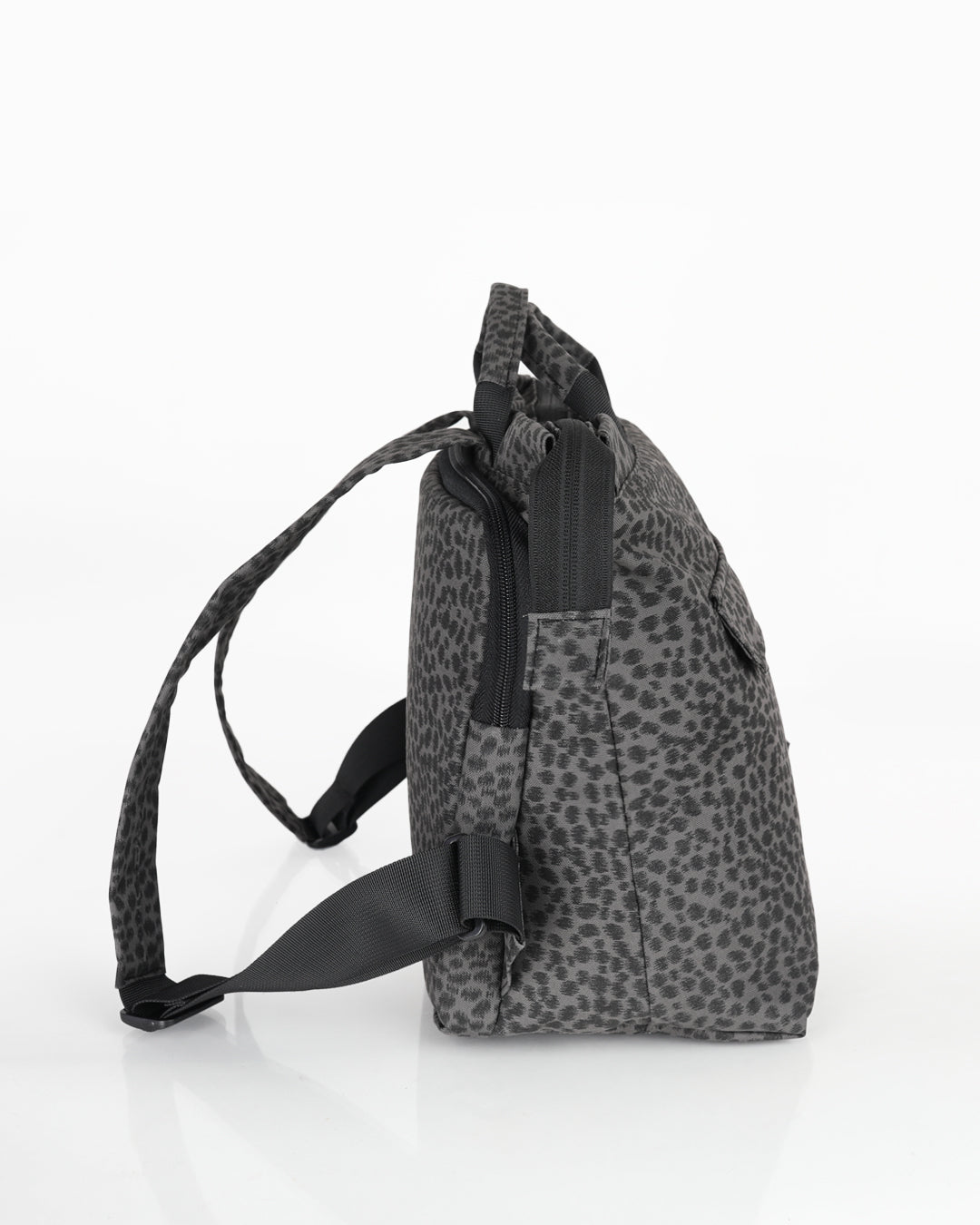 תיק גב מדריד אפור מנומר מזווית צד - תיק גב למחשב עם כיסוי מחשב מחובר לגב, חלוקה חכמה ונוחות מקסימלית.