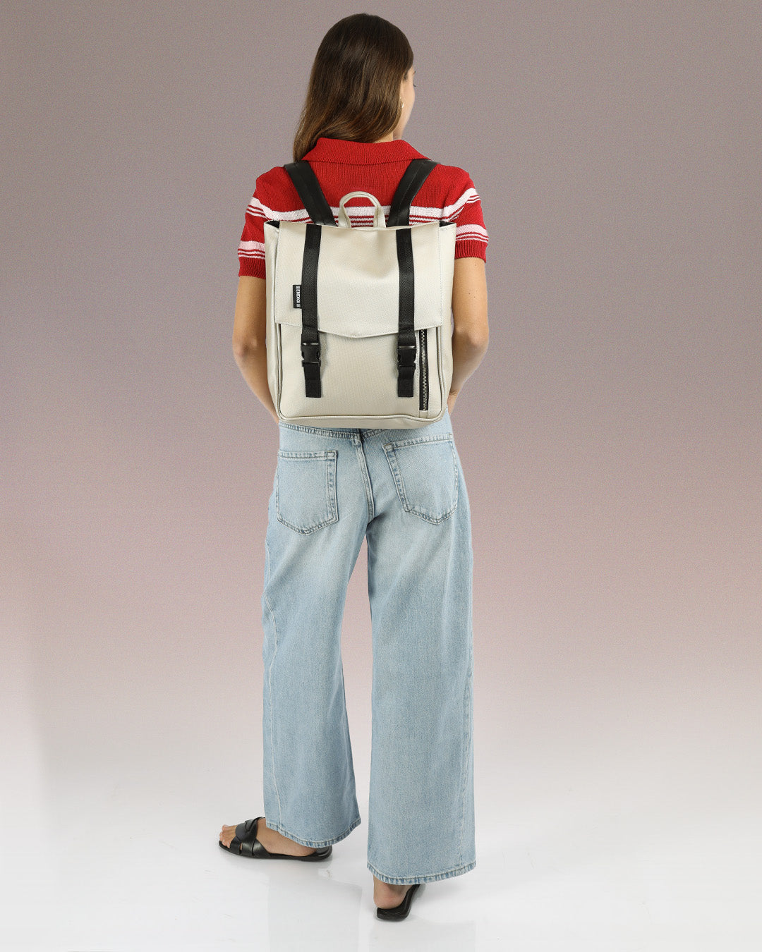 מיני טוקיו כסף שיבולים צילום אחורי, ניתן לראות את תא השליפה האחורה שלו והרצועות המרופדות לנוחות מקסימלית