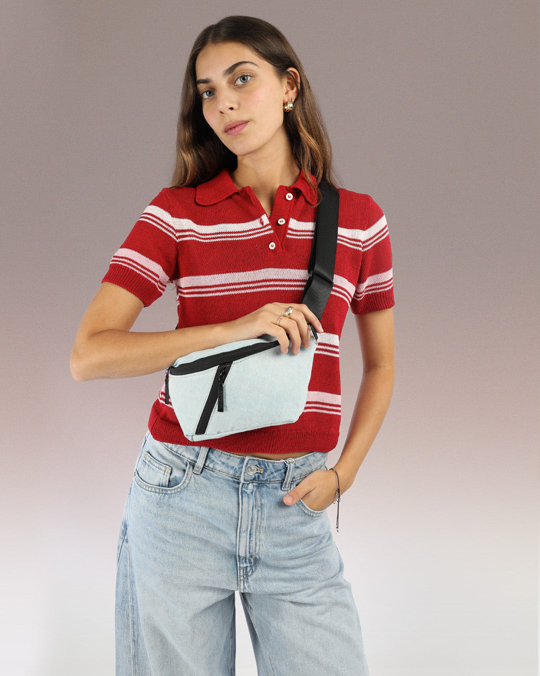 עם שני תאים חיצוניים לשליפה מהירה וחלל אחד ענק שמכיל את כל החיים ואפילו בקבוק מים קטן - הוא מנצח בפרקטיות והצורה הקלאסית שלו זורקת אותנו אחורה לחלקים הטובים באייטיז. אין ספק שהוא משדרג כל לוק ומגדיר מחדש את המילה נוחות.
