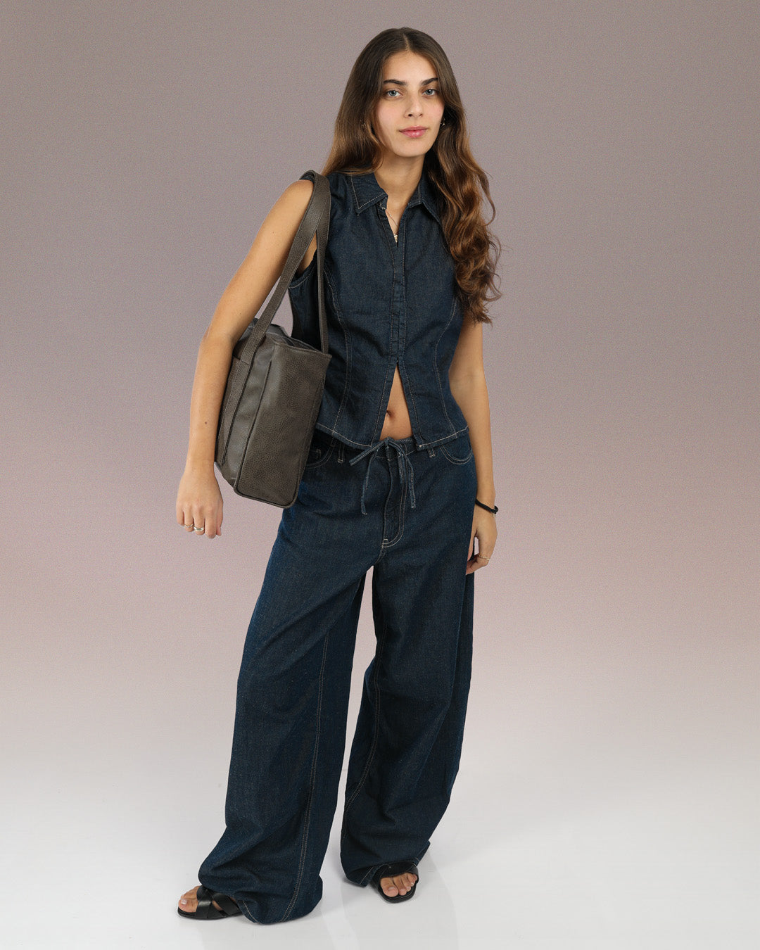 גזרה מתוחכמת, נועזת ועל זמנית, המשלבת בין בדי אריג לבדים דמויי עור איכותיים.