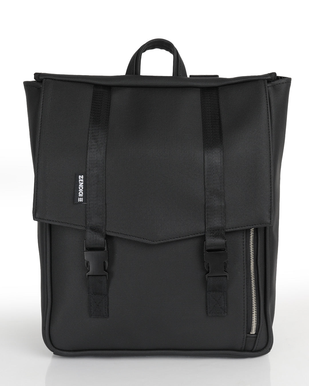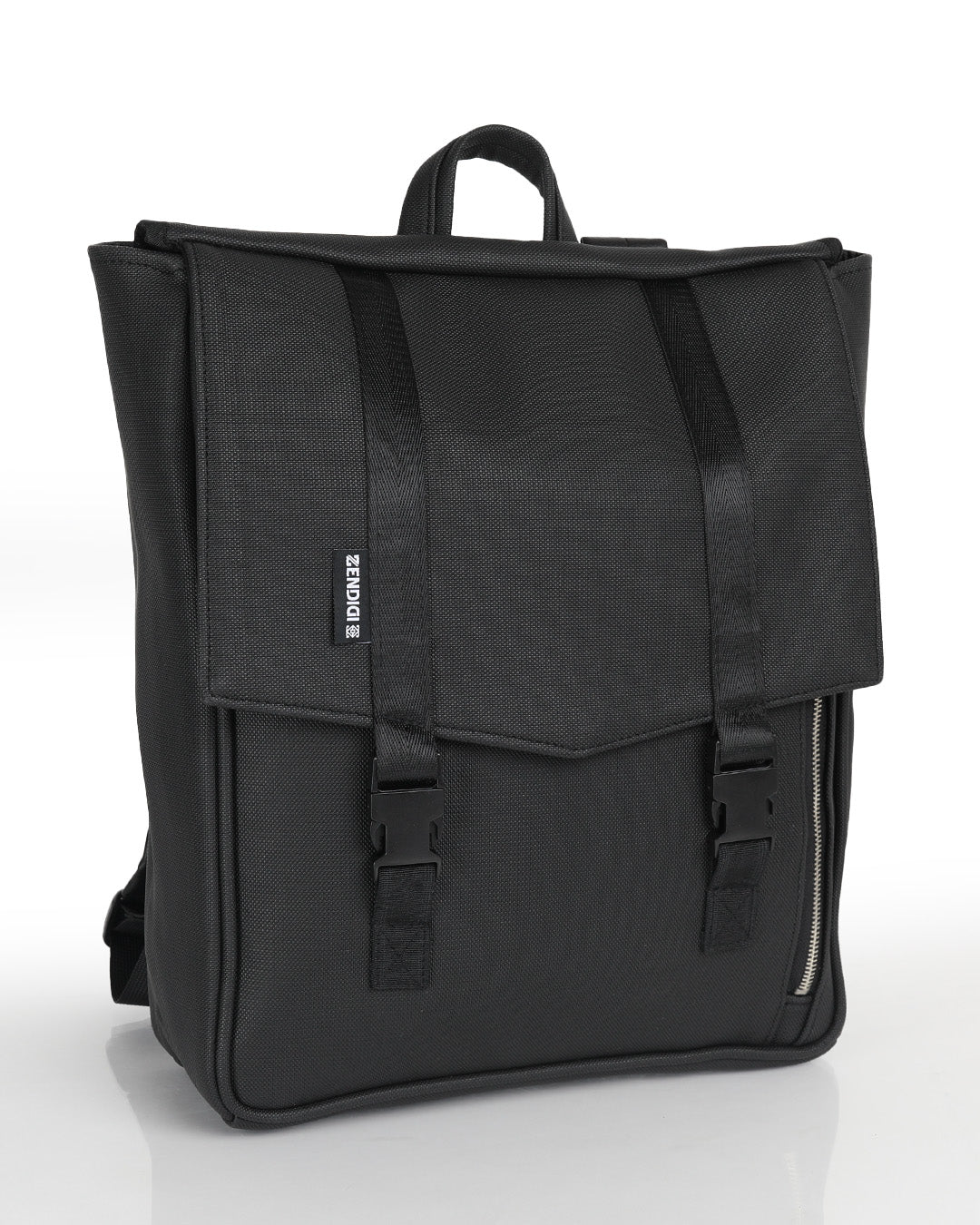תיק גב טבעוני טוקיו שחור יהלום מבית ZENDIGI - עיצוב נקי וחכם עם רוכסן צדדי נגיש, תא למחשב נייד ותאים פנימיים מאורגנים. מושלם לסטודנטים, לעבודה או לנסיעות.